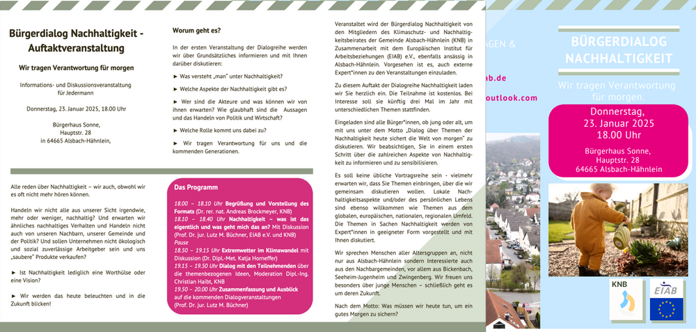 Unter dem Motto โ๐รผ๐ฟ๐ด๐ฒ๐ฟ๐ฑ๐ถ๐ฎ๐น๐ผ๐ด ๐ก๐ฎ๐ฐ๐ต๐ต๐ฎ๐น๐๐ถ๐ด๐ธ๐ฒ๐ถ๐ - ๐ช๐ถ๐ฟ ๐๐ฟ๐ฎ๐ด๐ฒ๐ป ๐ฉ๐ฒ๐ฟ๐ฎ๐ป๐๐๐ผ๐ฟ๐๐๐ป๐ด ๐ณรผ๐ฟ ๐บ๐ผ๐ฟ๐ด๐ฒ๐ปโ lรคdt unser Klimaschutz- und Nachhaltigkeitsbeirat (KNB), gemeinsam mit dem Europรคischen Institut fรผr Arbeitsbeziehungen (EIAB) e.V., dessen Vorsitzender Prof. Lutz Bรผchner gleichzeitig Mitglied im KNB ist, zu einer interessanten Veranstaltung ein.