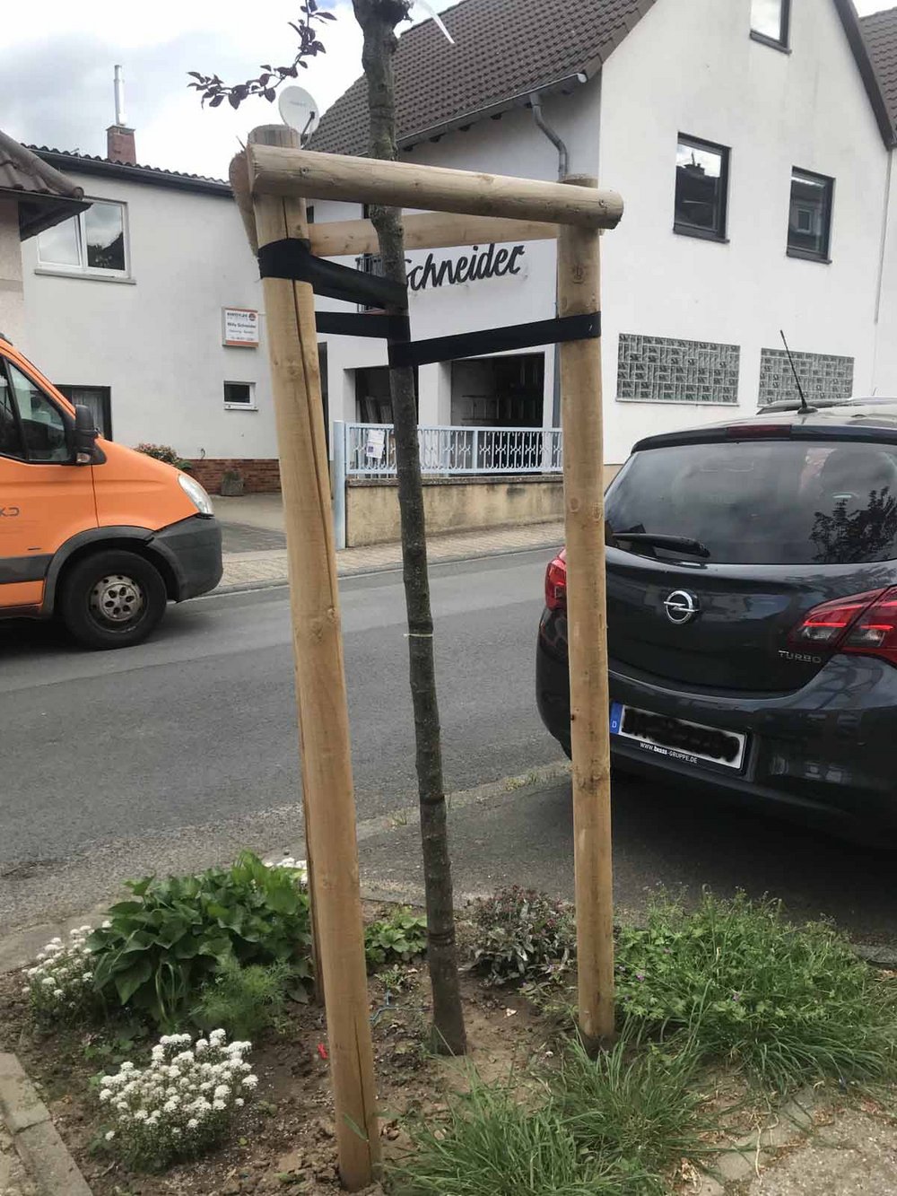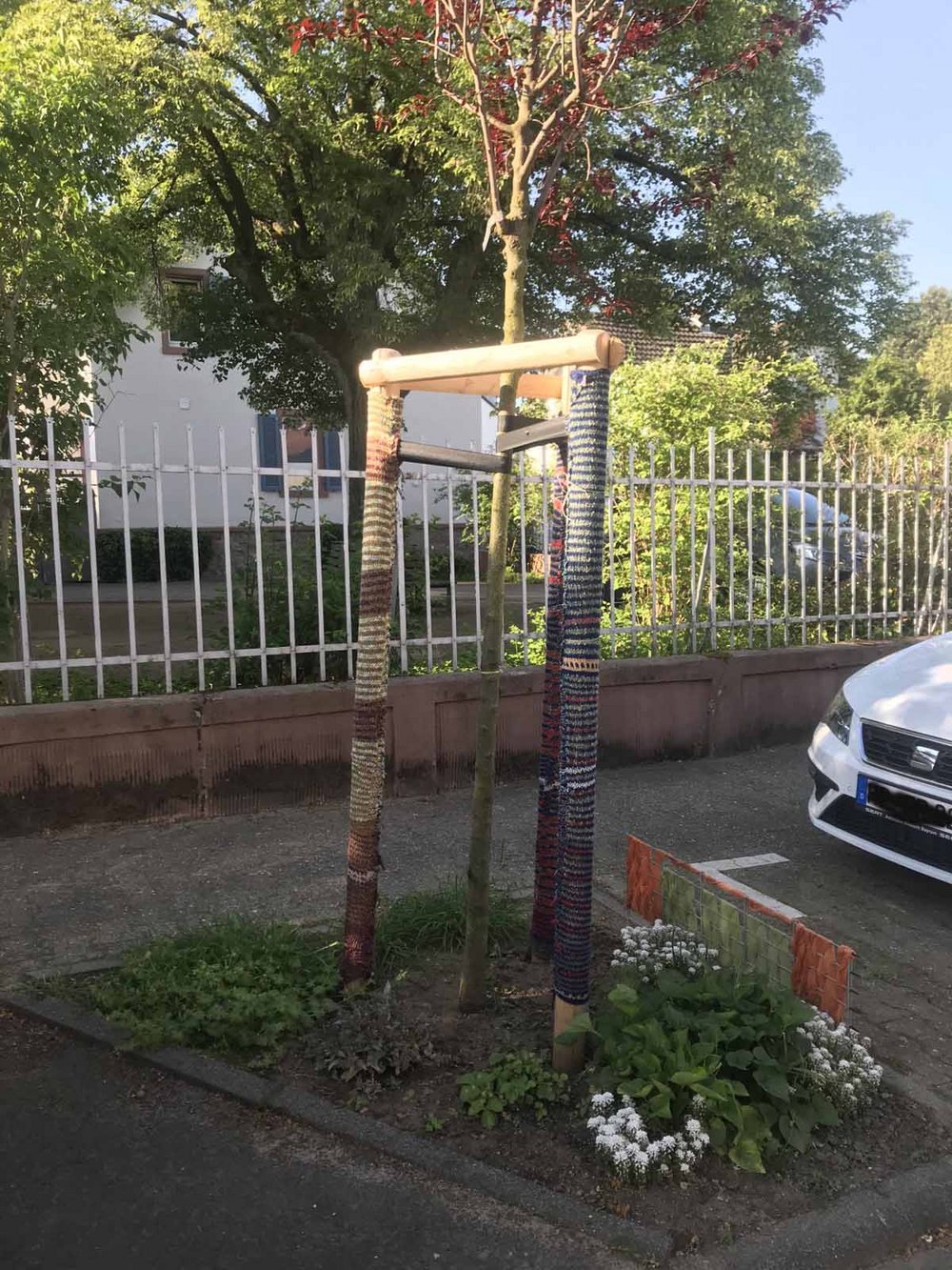 Nach dem Motto: Da könnte ja jeder kommen, eskaliert der Streit um bürgerschaftliches Engagement (siehe unser Beitrag vom 31.03.2022). Nun wurden die gehäkelten Verzierungen der Stützpfähle an den Bäume und die Schilder von Vertretern des Ordnungsamtes und des Bauhofs im Beisein von zwei Ortpolizisten entfernt. Den Initiatorinnen und Initiatoren wurde ein Ordnungsgeld angedroht.