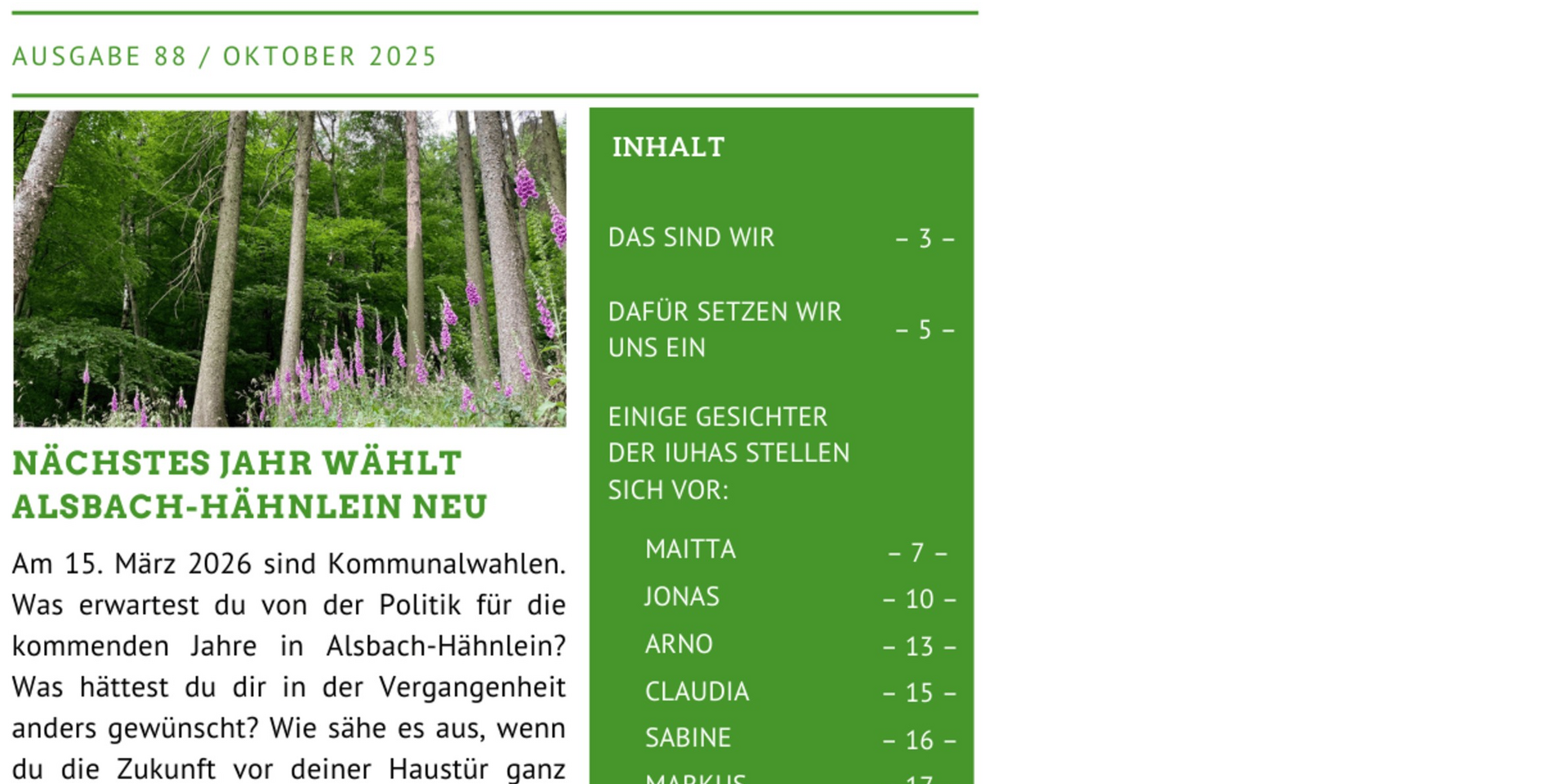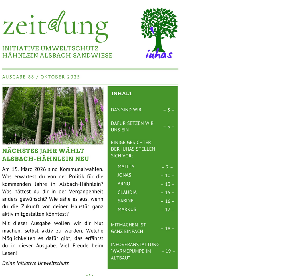 Wir leisten unseren Beitrag, um Ihnen eine nachhaltige Zukunft zu schaffen und setzen uns für die Herstellung und Erhaltung einer gesunden und natürlichen Umwelt im regionalen Umfeld der Bergstrasse ein. Wir sind seit 1981 in der Gemeinde politisch aktiv und mit Bündnis90/Die GRÜNEN im Landkreis Darmstadt-Dieburg assoziiert.